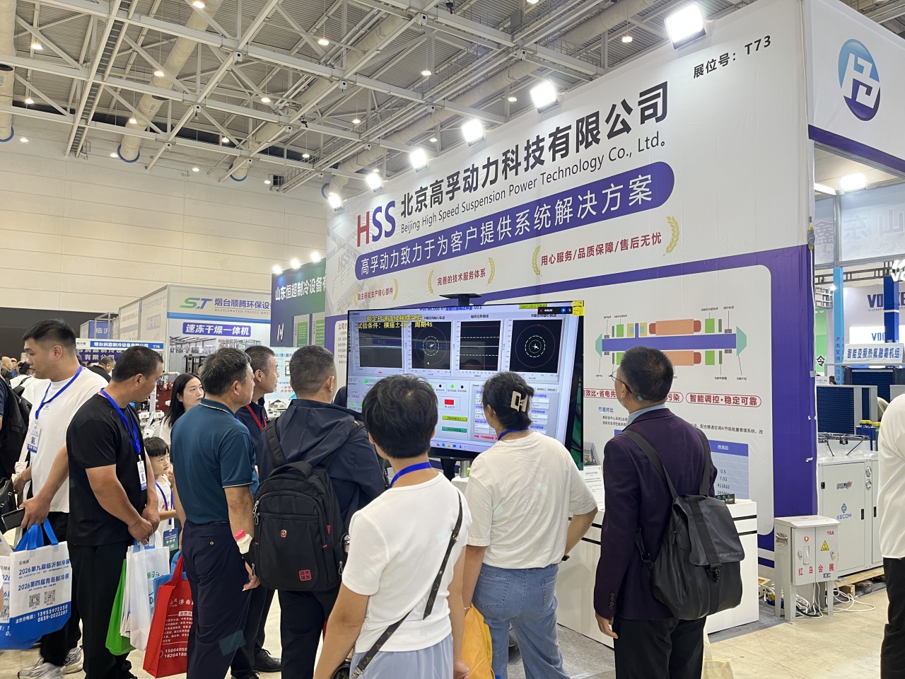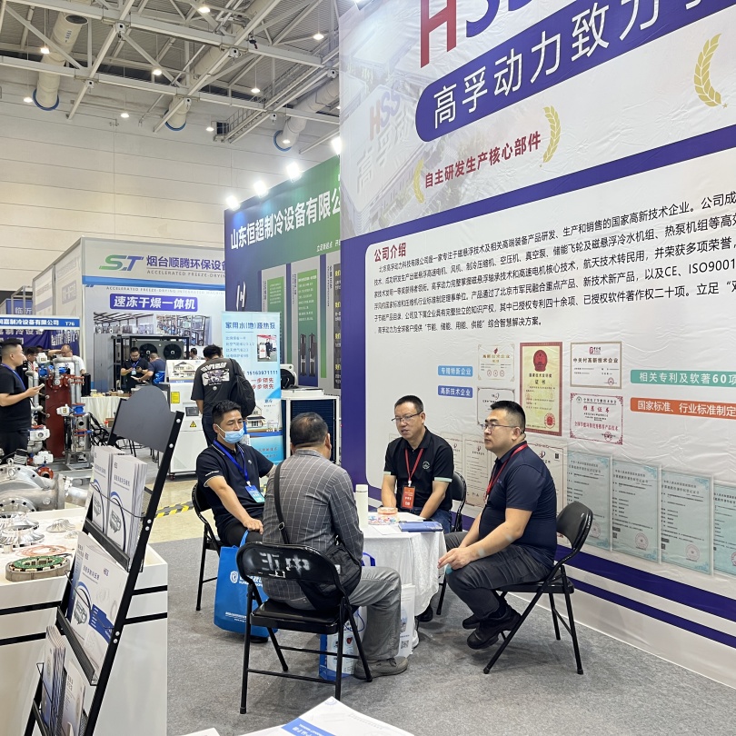 展会现场人潮涌动,高孚动力展台到访观众络绎不绝,高孚销售和技术专家向国内外客户和行业专家们详细讲解磁悬浮制冷压缩机设备及其性能优势和应用案例。同时,针对不同行业的具体需求,现场初步制定技术解决方案,致力于为不同制冷和供暖工况提供高孚动力稳定可靠的支持!